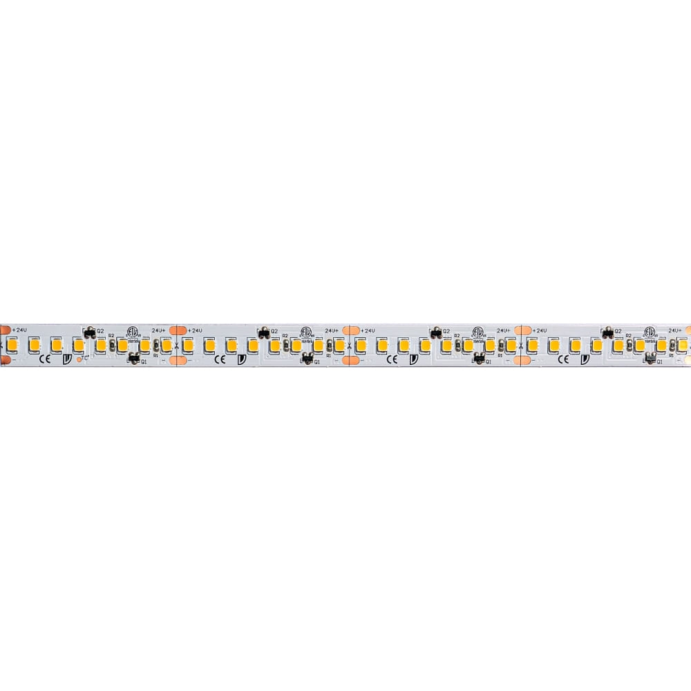 The LED strip operates at a voltage of 24V and has a power consumption of 86.4W. With a light output of 138.88lm/W and an average lamp lifespan of 50000 hours, it is particularly efficient. The LED strip has 160 LEDs per meter and an LED spacing of 0.63 cm. The minimum bending diameter is 6 cm.