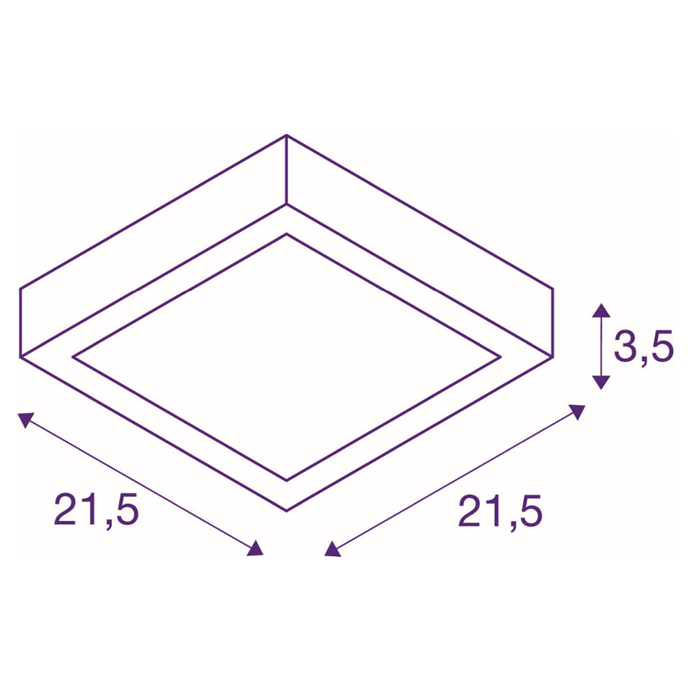 The dimensions of the luminaire are 21.5 x 21.5 x 3.5 cm and it weighs only 0.5 kg. With a beam angle of 110° and a color rendering index of 90Ra, it offers uniform and natural lighting. The color temperature is 4000K, which corresponds to a neutral white light.