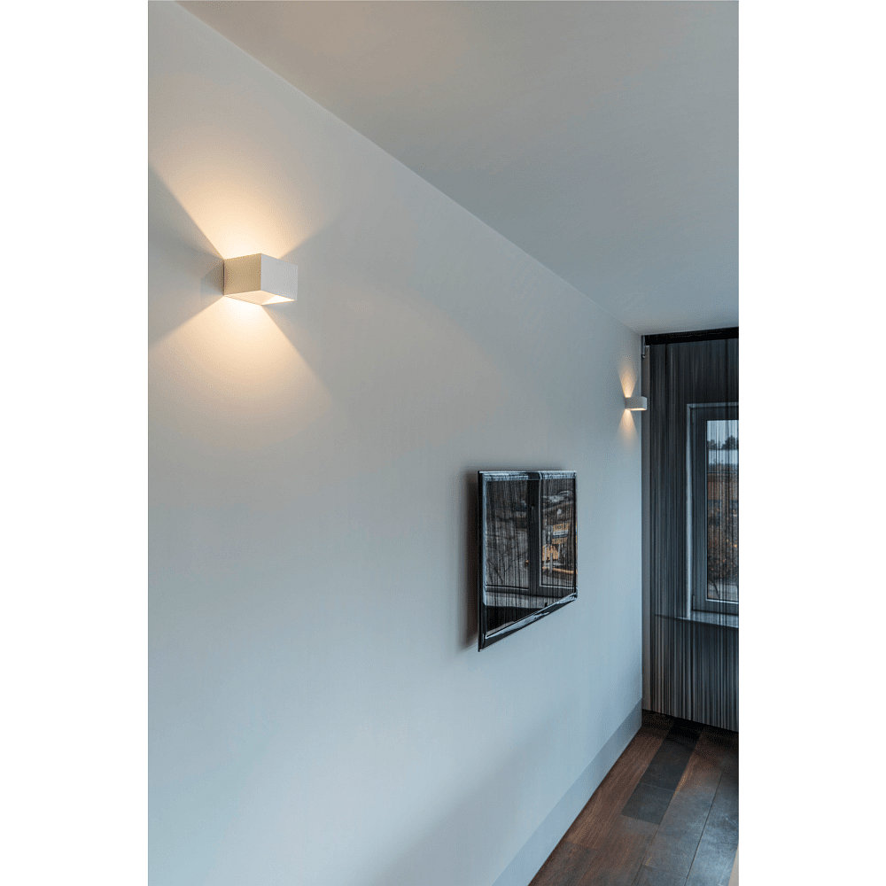 The LOGS IN LED wall light from SLV impresses with its modern, angular design in timeless white. With compact dimensions of 10 x 7 x 10 cm, the light fixture blends discreetly and stylishly on any wall. The housing made of sturdy aluminum ensures a durable and high-quality appearance that does not lose its elegance even after long use. Surface mounting makes installation simple and secure.