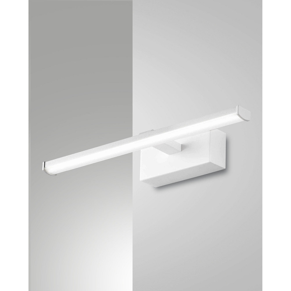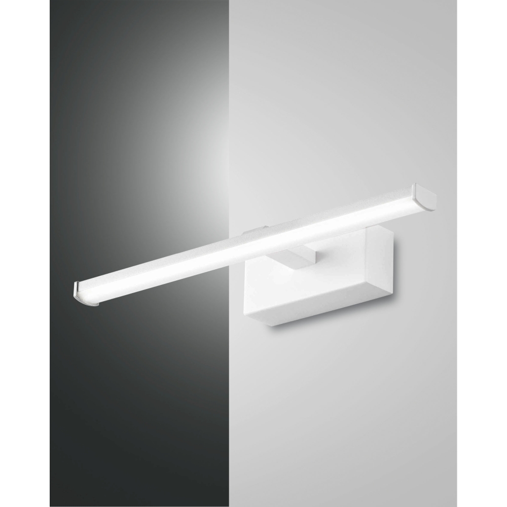 The LED bathroom wall light NALA from Fabas Luce impresses with its minimalist and stylish design. With a length of 30 cm and an elegant white finish, this mirror light blends harmoniously into any room concept. The flat, angular lamp head combined with a curved, frosted light diffuser ensures even and pleasant light distribution. This luminaire is ideal for illuminating mirrors, pictures, or objects and offers a discreet yet effective light source thanks to its subtle design.