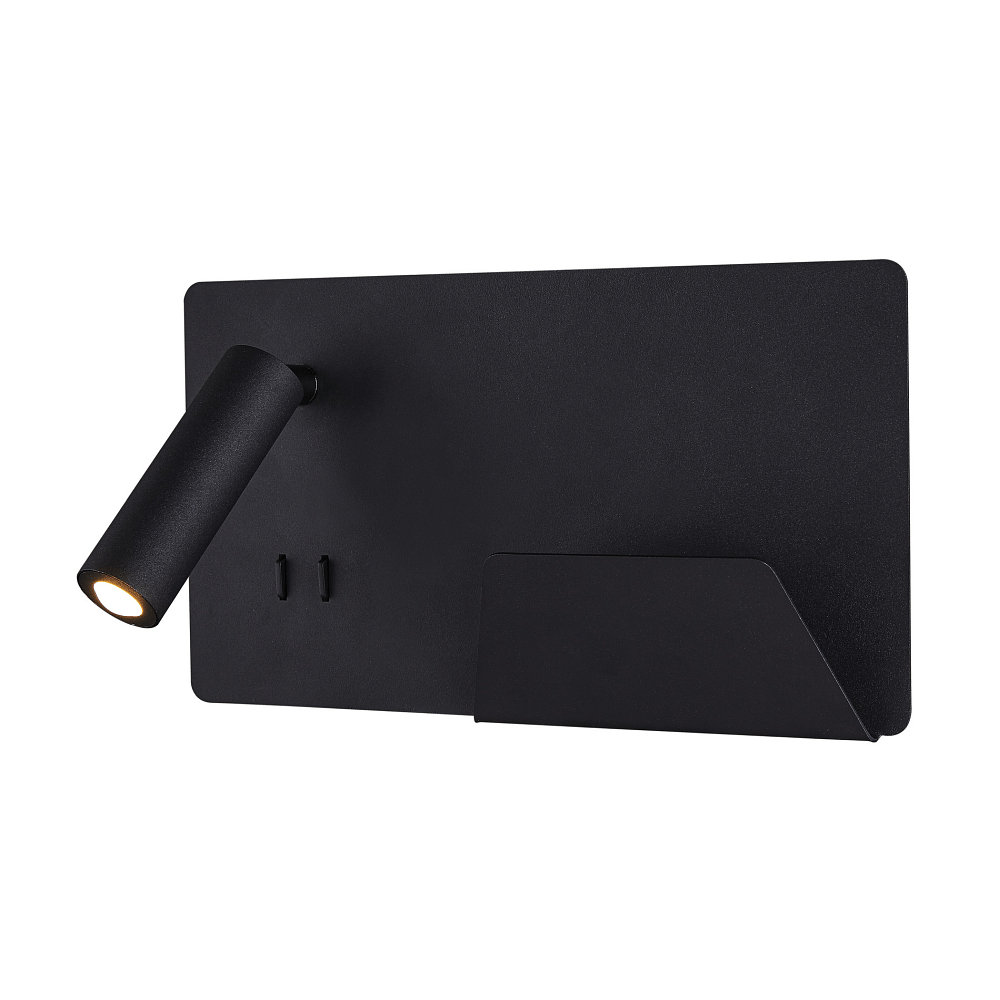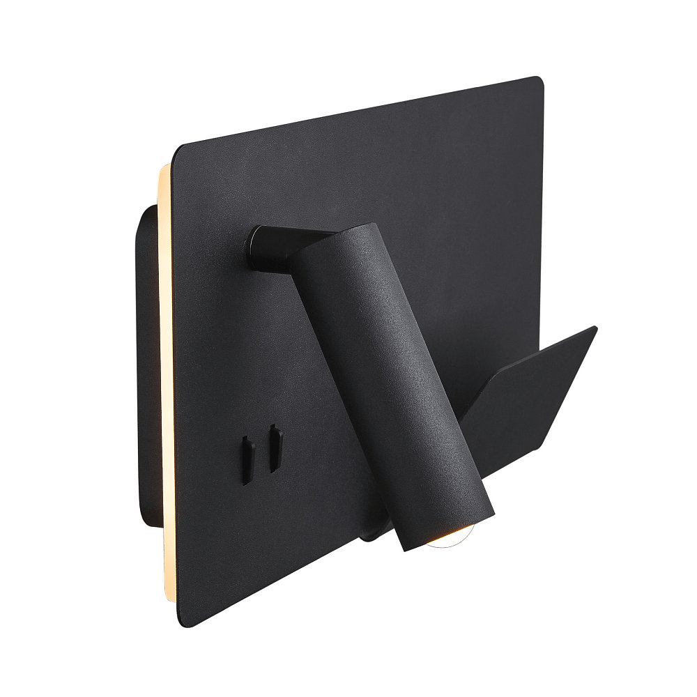 LED Wall luminaire SOMNILA SPOT Indoor, 13W, 3000K, Spot 65lm, incl. USB port, Spot right, black, back light 370lm