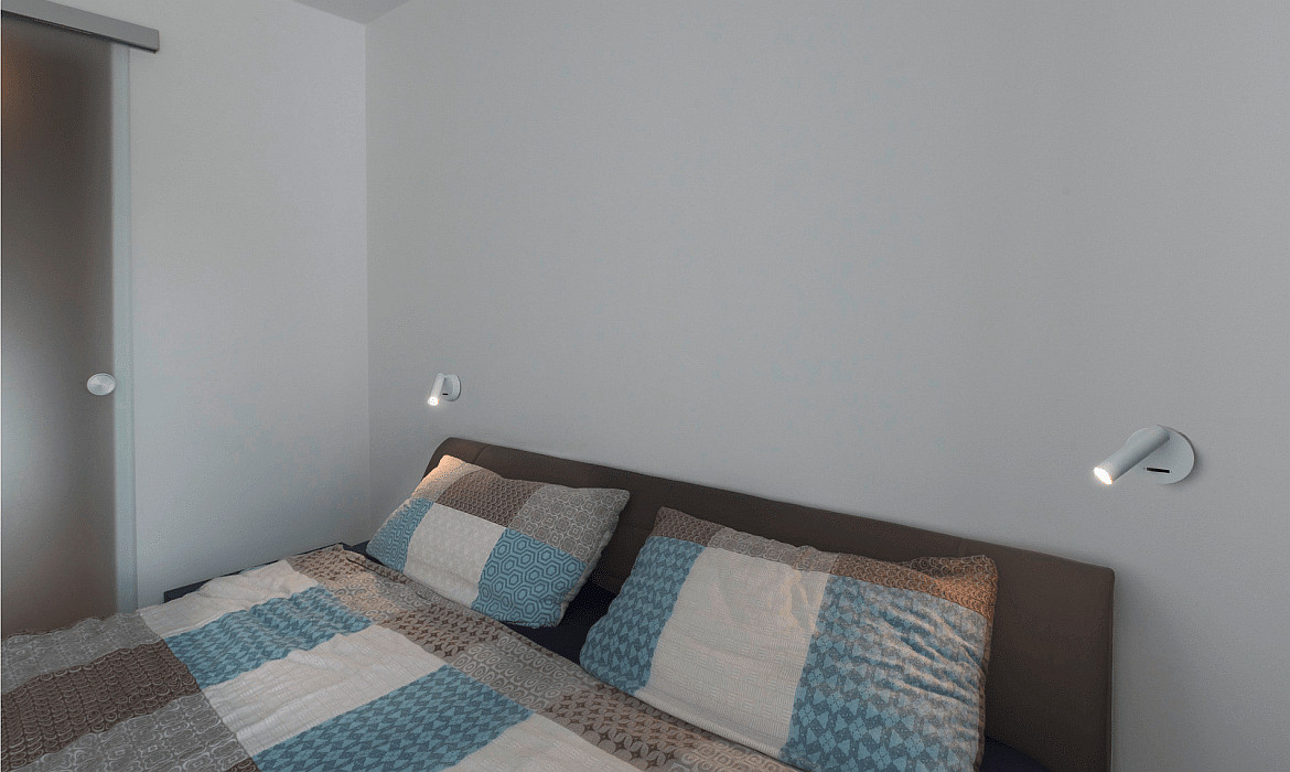 This wall light is ideal as a reading light and can be flexibly adjusted thanks to its 90° swivel range. It comes with an integrated LED bulb that cannot be replaced. The color rendering index is over 90Ra, ensuring natural color reproduction.