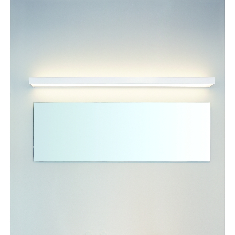 Die Wandleuchte hat die Maße L/B/H: 10/80/5 cm und wiegt 3,135kg. Sie ist IP44 geschützt und somit auch für Feuchträume geeignet. Die LED Leuchtmittel sind bereits im Lieferumfang enthalten und können mittels Phasenabschnitt gedimmt werden. Die Farbwiedergabeindex beträgt >80Ra und die Farbtemperatur liegt bei 2700K.
