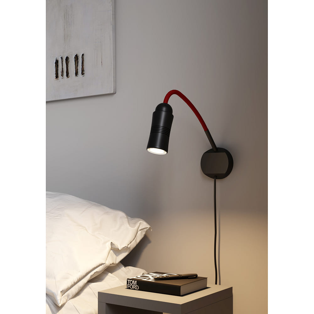 LED Wandleuchte NEO! FLEX HOTEL II (NV), 14W 2700K 1500lm 25-65° (variabel), mit Kabel, schwarz matt / rot
