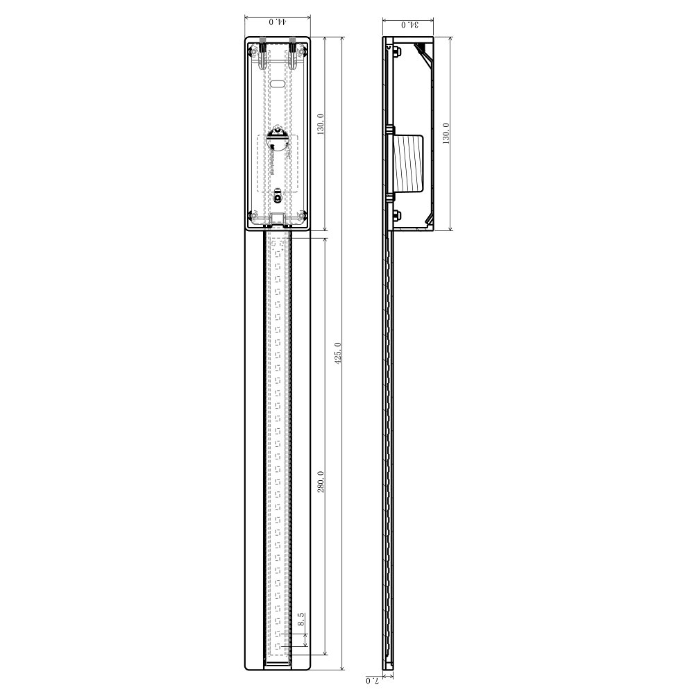 Die Wandleuchte hat einen Ausstrahlungswinkel von 110° und eine Größe von 42,5 x 4,4 x 3,4 cm. Sie besteht aus gebürstetem Aluminium und wiegt nur 0,49kg. Mit einer mittleren Lampenlebensdauer von 20000 Stunden ist sie langlebig und zuverlässig.