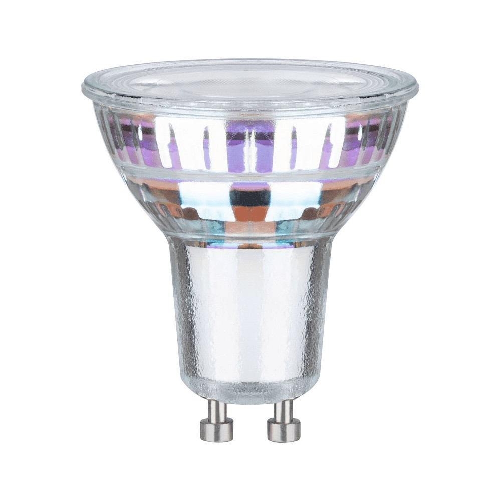 The Paulmann LED reflector lamp offers very good color rendering with an index of over 80 Ra, making colors appear natural and vibrant. The light color is warm white and provides a comfortable ambiance. Additionally, the light output is switchable and flicker-free, which is gentle on the eyes. The lamp minimizes stroboscopic effects and has a high color consistency with a MacAdam value of under 6 SDCM, ensuring the light color remains constant and reliable.