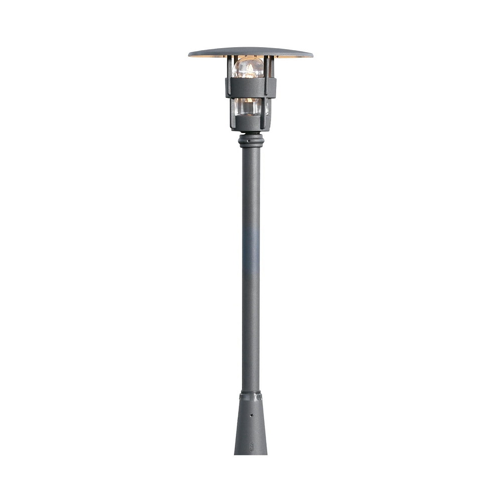 Der Leuchtenkopf besteht aus hochwertigem Aluminium und Glas, was ihm eine lange Lebensdauer und Stabilität verleiht. Mit der Schutzart IP23 ist er gegen Spritzwasser geschützt und somit ideal für den Einsatz im Freien geeignet.
