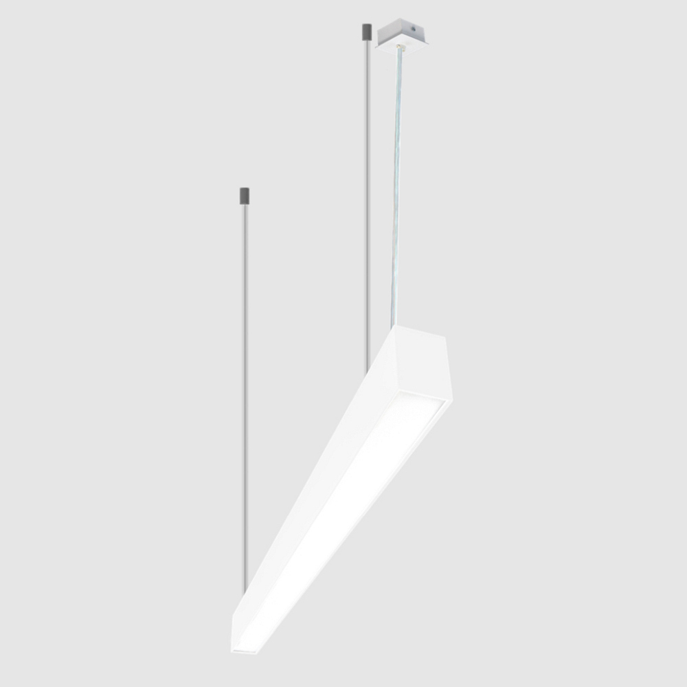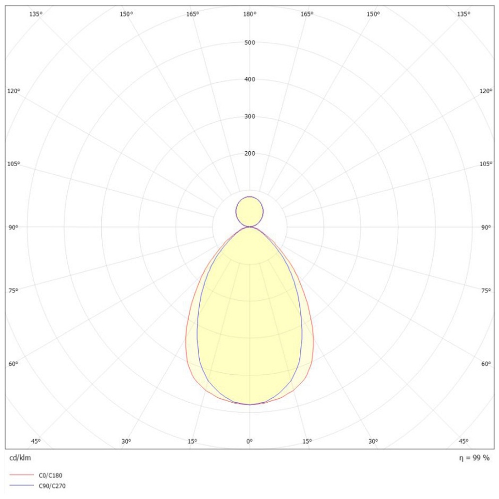 The special MICROPAL® cover ensures uniform and glare-free illumination with a UGR value below 19. This complies with the DIN EN 12464-1 standard and makes the luminaire ideal for screen workstations, as it minimizes the risk of glare and eye strain. The combination of direct and indirect light distribution with emission angles of 77° downward and 107° upward creates a pleasant lighting atmosphere.