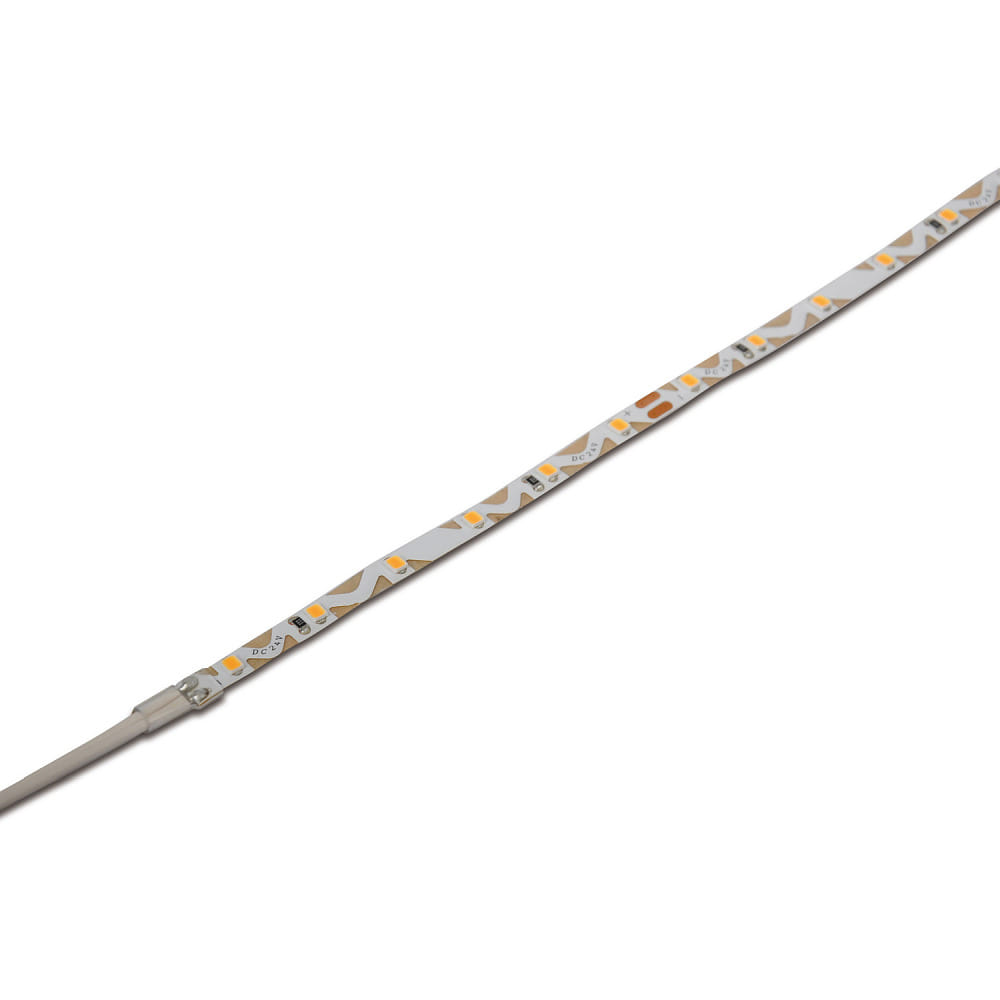 The package includes a connection set and an end piece. The LED strip has a beam angle of 120° and an operating voltage of 24V=. For more information such as the conductor cross-section, the number of light sources per meter, and the minimum bending radius, please refer to the product details.