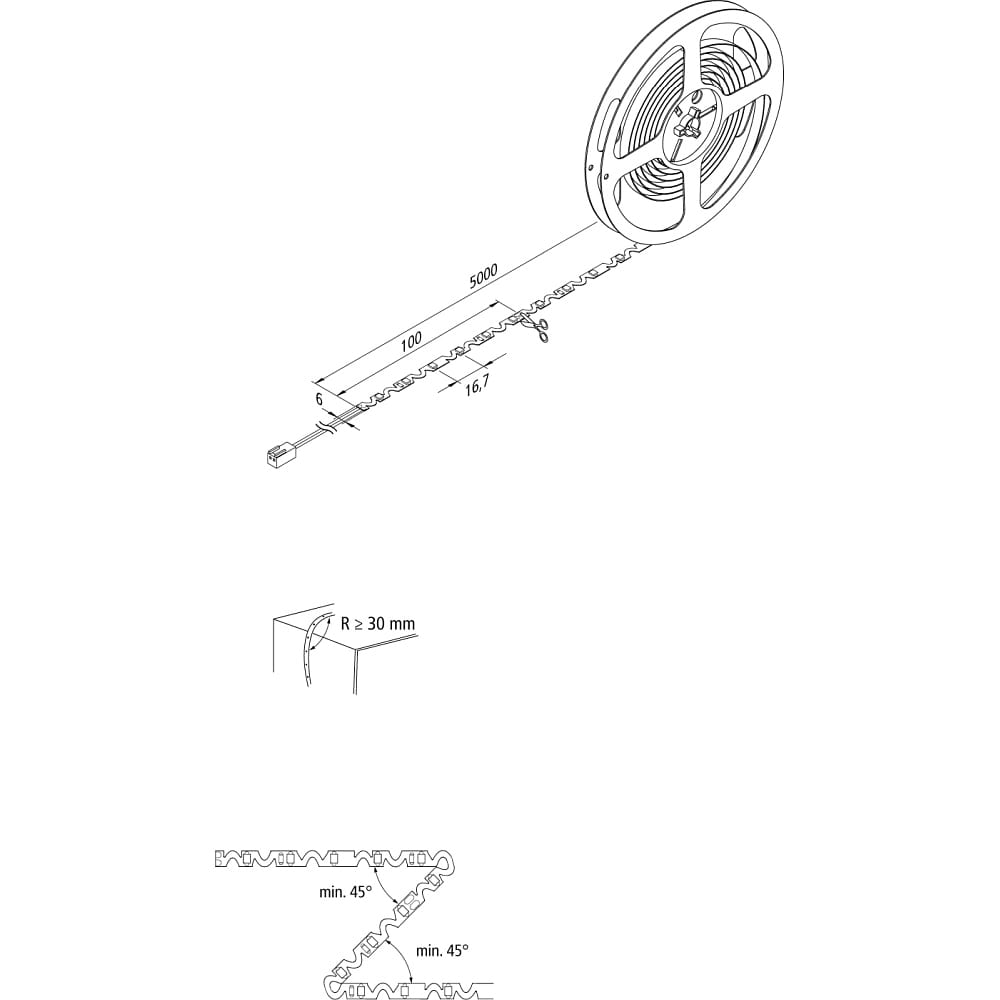 Thanks to its flexibility, the LED strip can be easily bent into various shapes. With a beam angle of 120°, it provides uniform illumination in any room. The IP20 protection rating makes it ideal for indoor use.