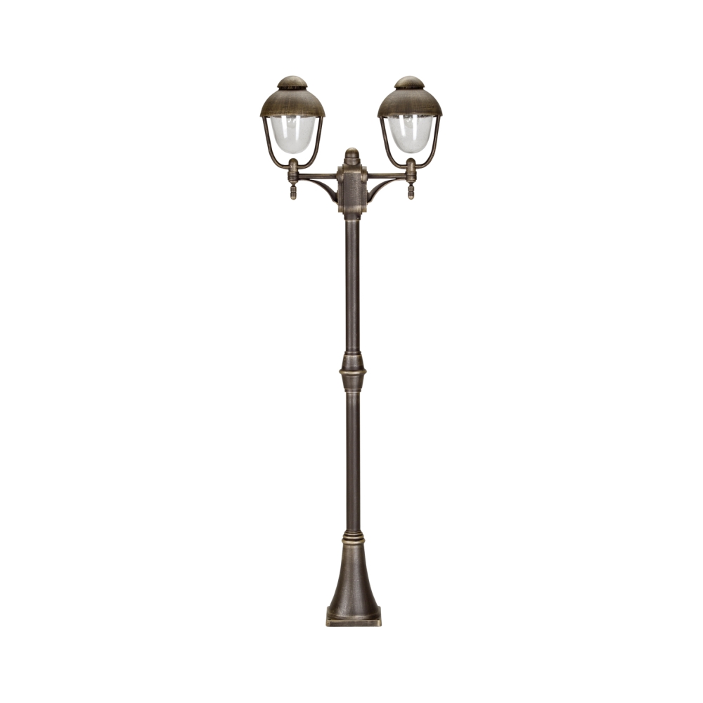 Mast light Country style double dome 2 Type No. 2040, 2 flames, height 209cm, IP44, 2x E27, cast alu, glass, brown brass