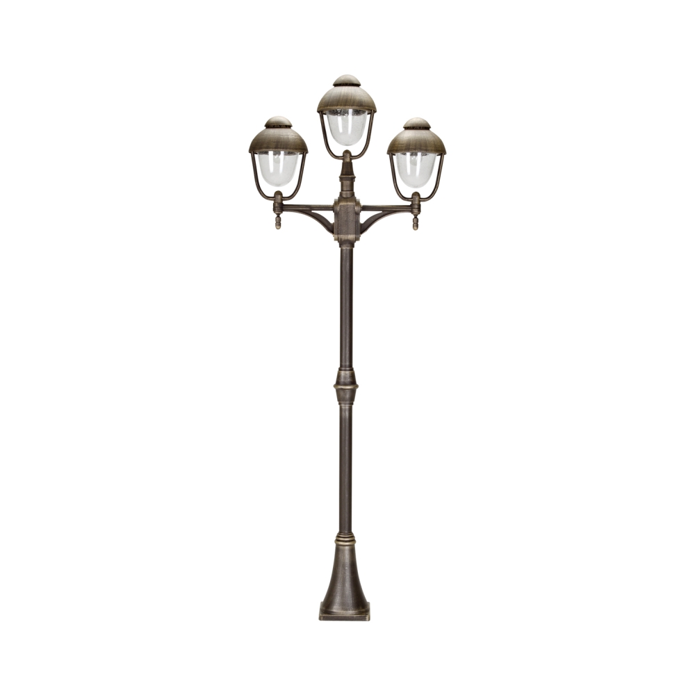 Mast light Country style double dome 2 Type No. 2041, 3 flames, height 209cm, IP44, 3x E27, cast alu, glass, brown brass