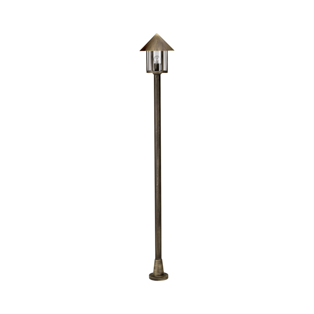 Mastleuchte Landhaus Kegeldach modern 1-flammig Typ Nr. 4127, Höhe 183cm, IP44, E27 QA55, Alu-Guss / Acryl klar, Braun-Messing