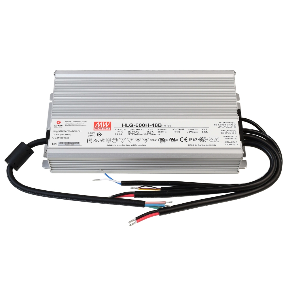 Meanwell LED-power supply unit, DIM, CV, HLG-600H-48B, voltage constant, dimmable: 0-10V / 1-10V, 90-305V AC