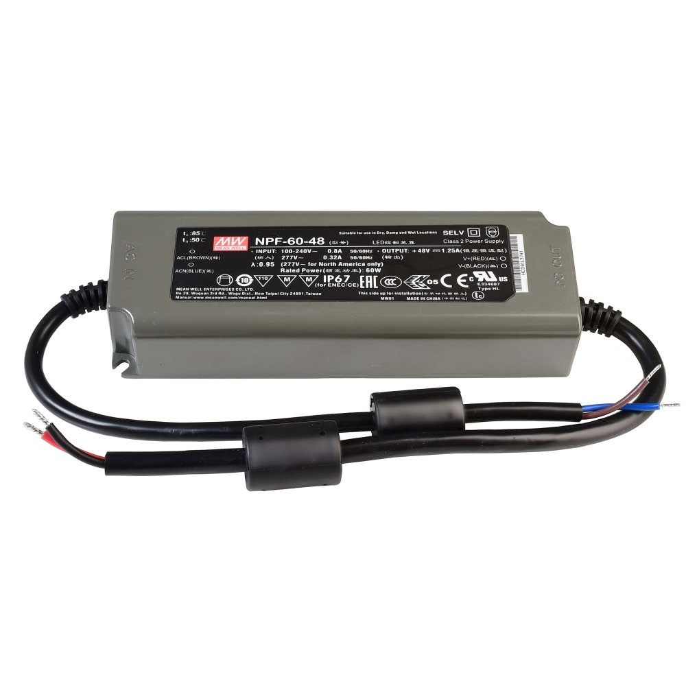 Meanwell Netzgerät, CV, NPF-60-48, spannungskonstant, 90-305V AC/50-60Hz, 48V DC, 0-1250 mA, 60W