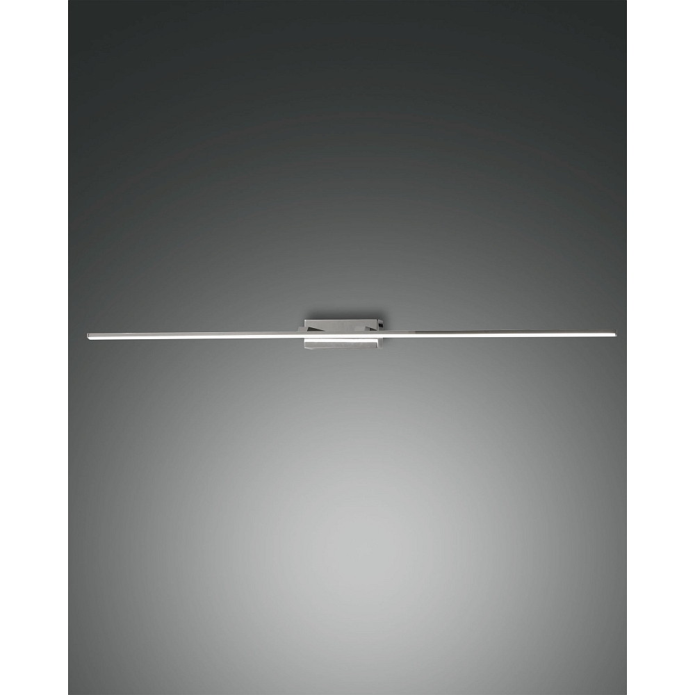 The LED bathroom wall light NALA from Fabas Luce combines minimalist design with high functionality. With a length of 109.5 cm and a slim chrome form, it is a stylish companion for any wall area. The light impresses with its square, flat lamp head and a curved, satin-finished light diffuser that distributes the light softly and evenly. Thus, NALA provides pleasant and glare-free illumination, making it perfect for mirrors, pictures, or objects.