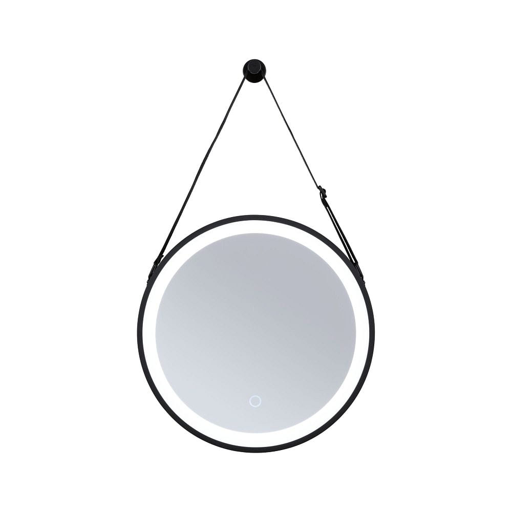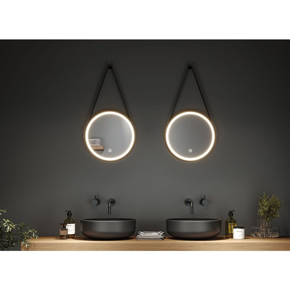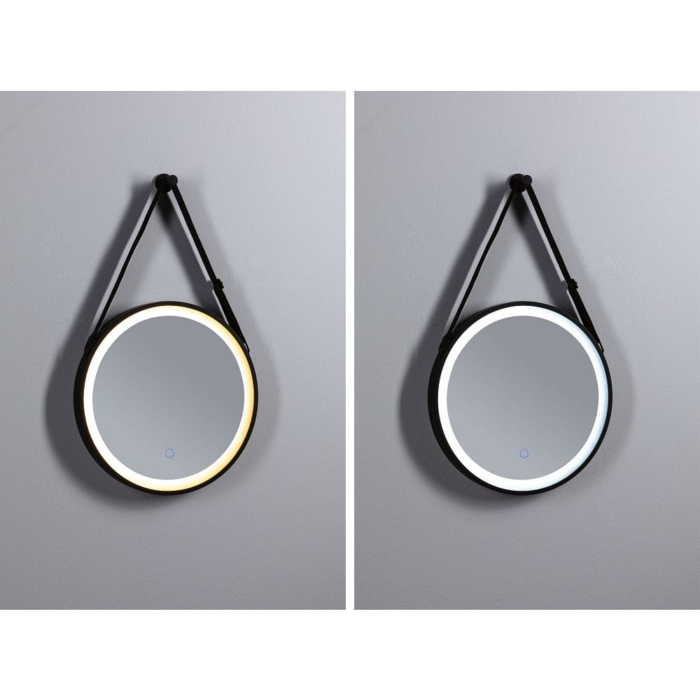 The MIRO LED illuminated mirror impresses with its elegant, round shape with a diameter of 40 cm and a matte black frame that fits perfectly into various interior styles. Made from durable acrylic and metal, it combines longevity with a minimalist look. The practical fabric strap is adjustable, allowing the height of the mirror to be customized individually. This thoughtful design makes the mirror a stylish and functional highlight.