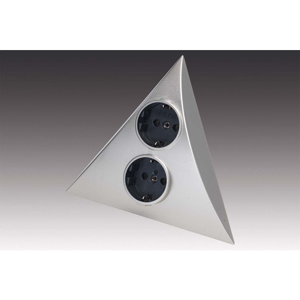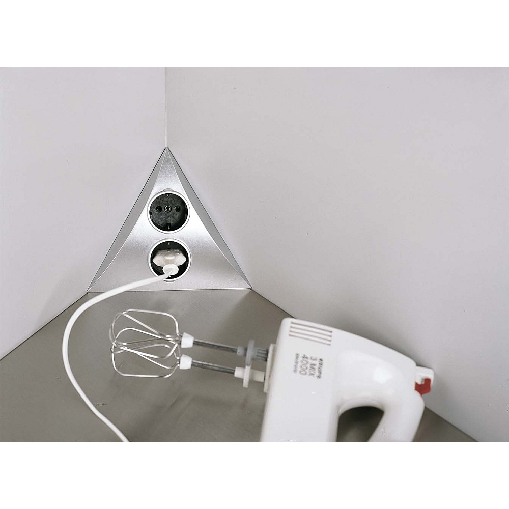 Möbel-Doppelsteckdose LUXOR 2 ST zur Aufbau-Eckmontage, 220-240V AC, 2 Schuko-Steckdosen, Edelstahl-Optik