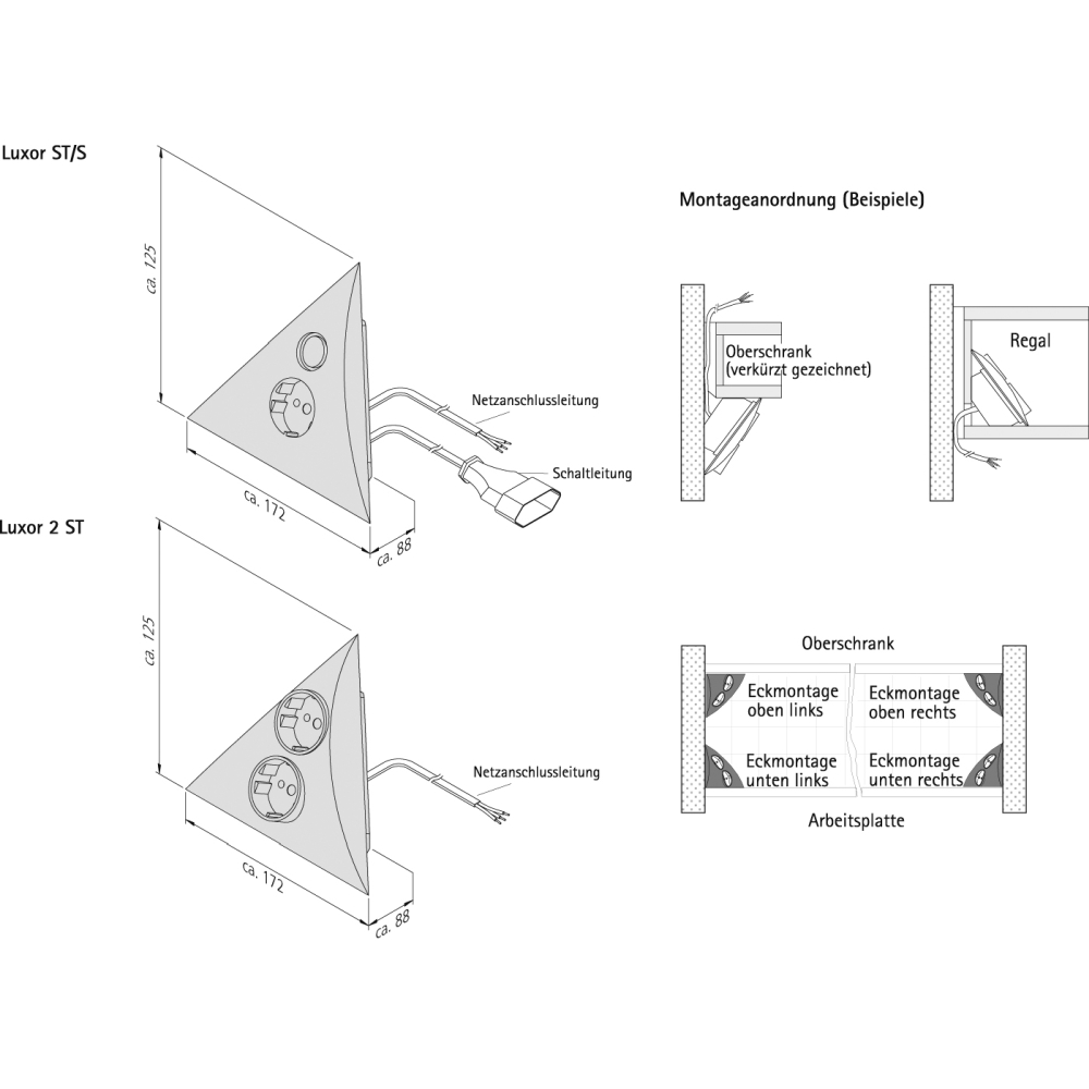 Die Möbel-Doppelsteckdose LUXOR 2 ST ist perfekt geeignet für die Montage in Ecken und an Möbeln, wie Arbeitsplatten oder Oberschränken in der Küche. Mit 2 Schuko-Steckdosen (230 V AC) bietet sie die Möglichkeit, elektrische Geräte bequem anzuschließen.