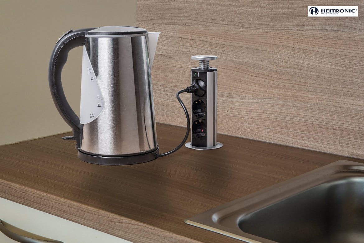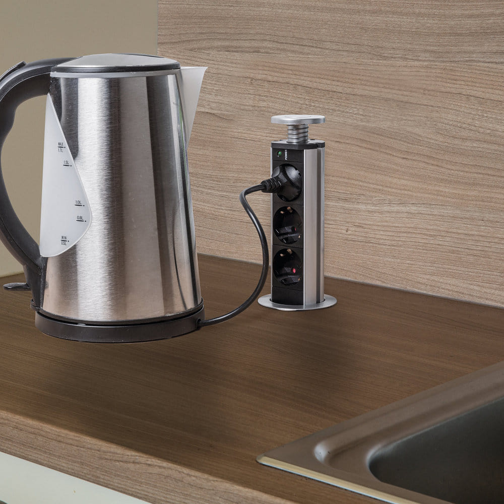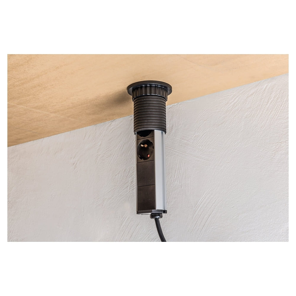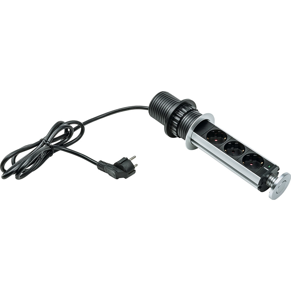 Möbeleinbau-Energiesäule RIMINI, versenbkbar, 3-fach, 230V / 16A, max. 3500W, schwarz / silber