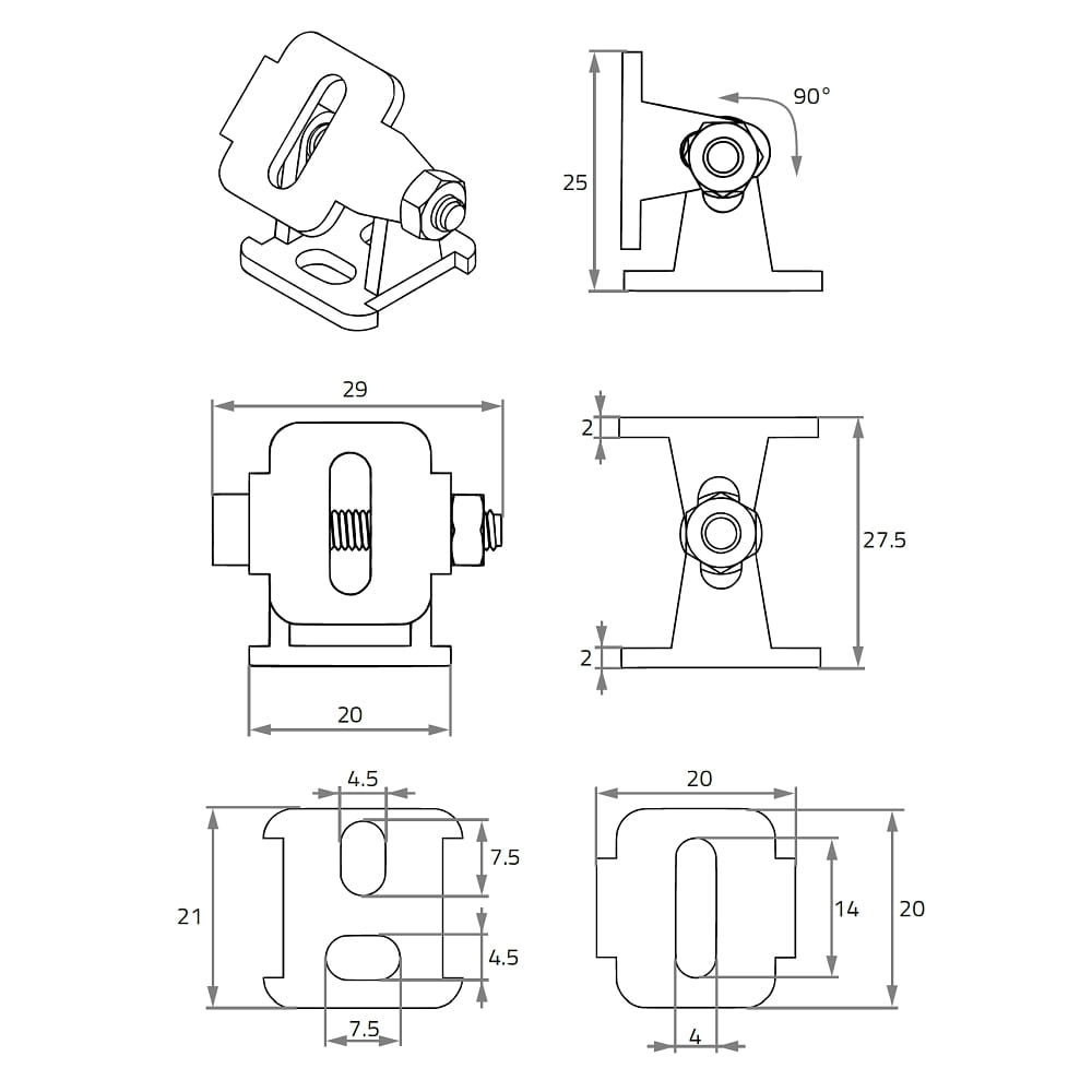 mounting accessories PROFILE MOUNTING JOINT 90° - 2M adjustable, silver