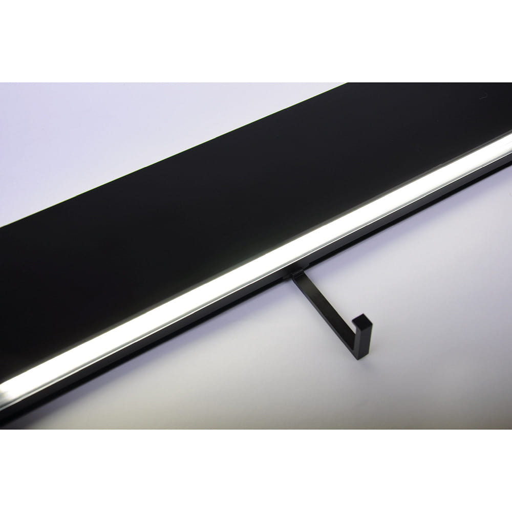 The shelf attachment is available in matte black or brushed stainless steel finish, making it easy to integrate into various interior styles. With its modern design and functionality, this accessory is an ideal addition to the LED wall-mounted INTERIO-LINE light.