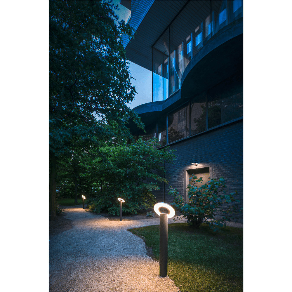 The Outdoor LED floor lamp I-RING is made of high-quality aluminum, providing a sturdy and durable construction. Installation is straightforward and can be easily done with the included screws. With a weight of 2.17kg and a base diameter of 8.5cm, it is stable and sturdy.