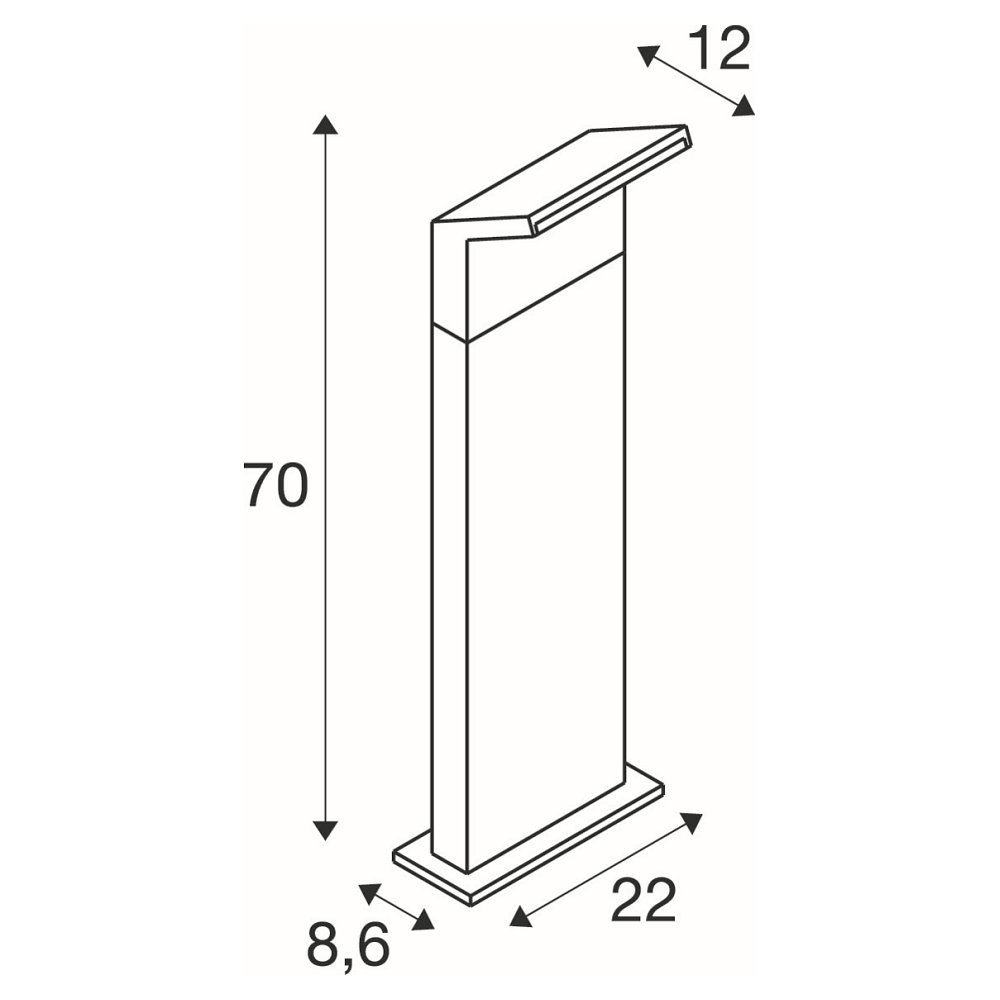 The ORDI II POLE 70 has an IP65 protection class, making it particularly robust and weather-resistant. With dimensions of 11.7 x 18 x 70 cm and a weight of 3.06kg, it is easy to install and ideal for outdoor use.