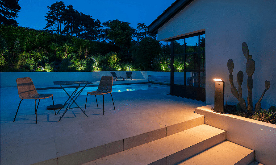 The LED Outdoor Floor Lamp ORDI II POLE 70 comes with the operating device, motion sensor, and brightness sensor included. This lamp is ready for use immediately and provides added convenience through automatic control.