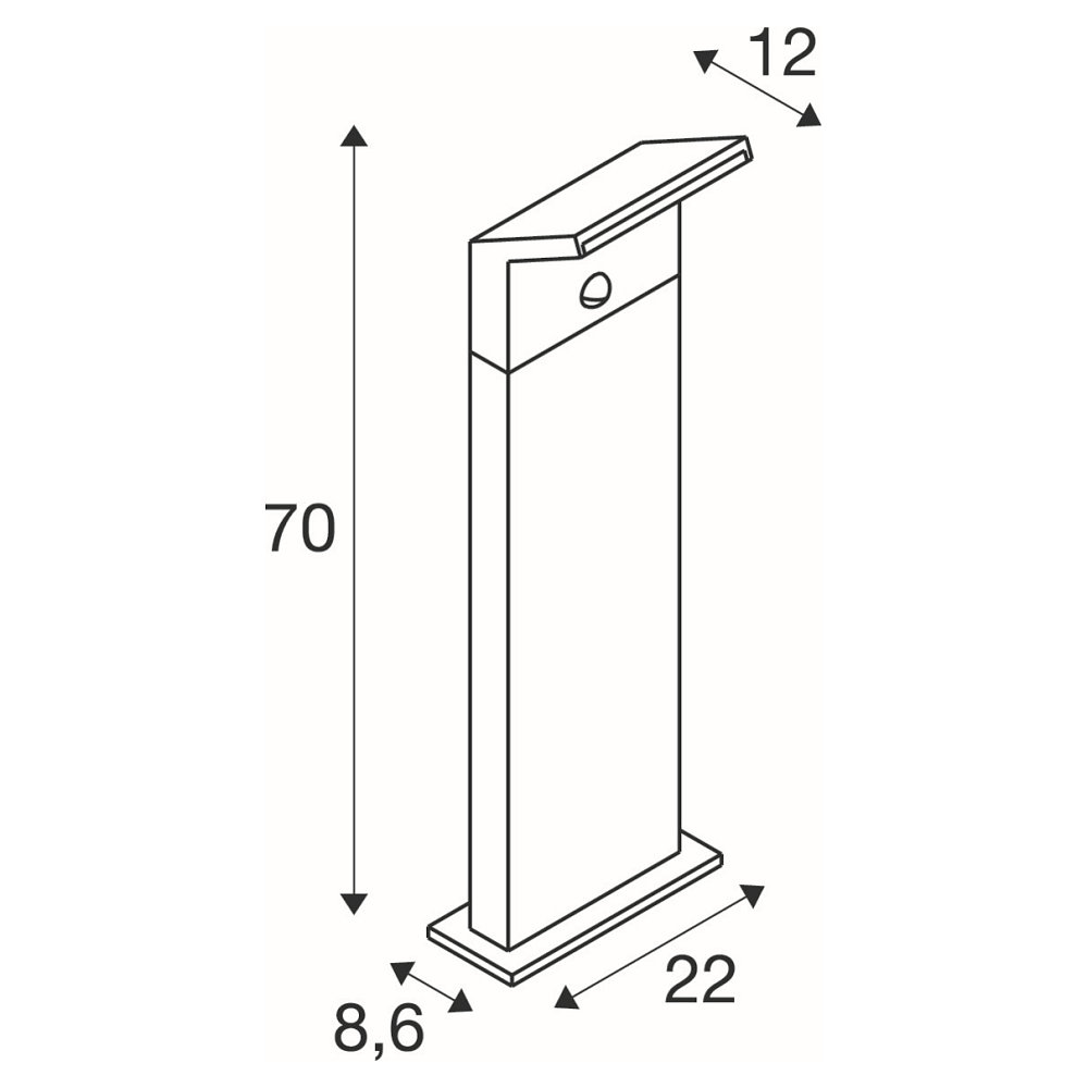 The LED Outdoor Floor Lamp ORDI II POLE 70 is a square lamp with a sensor, operated with a power of 10W. With a color temperature of 2200/3000K and a luminous flux of 700lm, this lamp provides pleasant light in outdoor areas. The brand SLV stands for quality and durability.