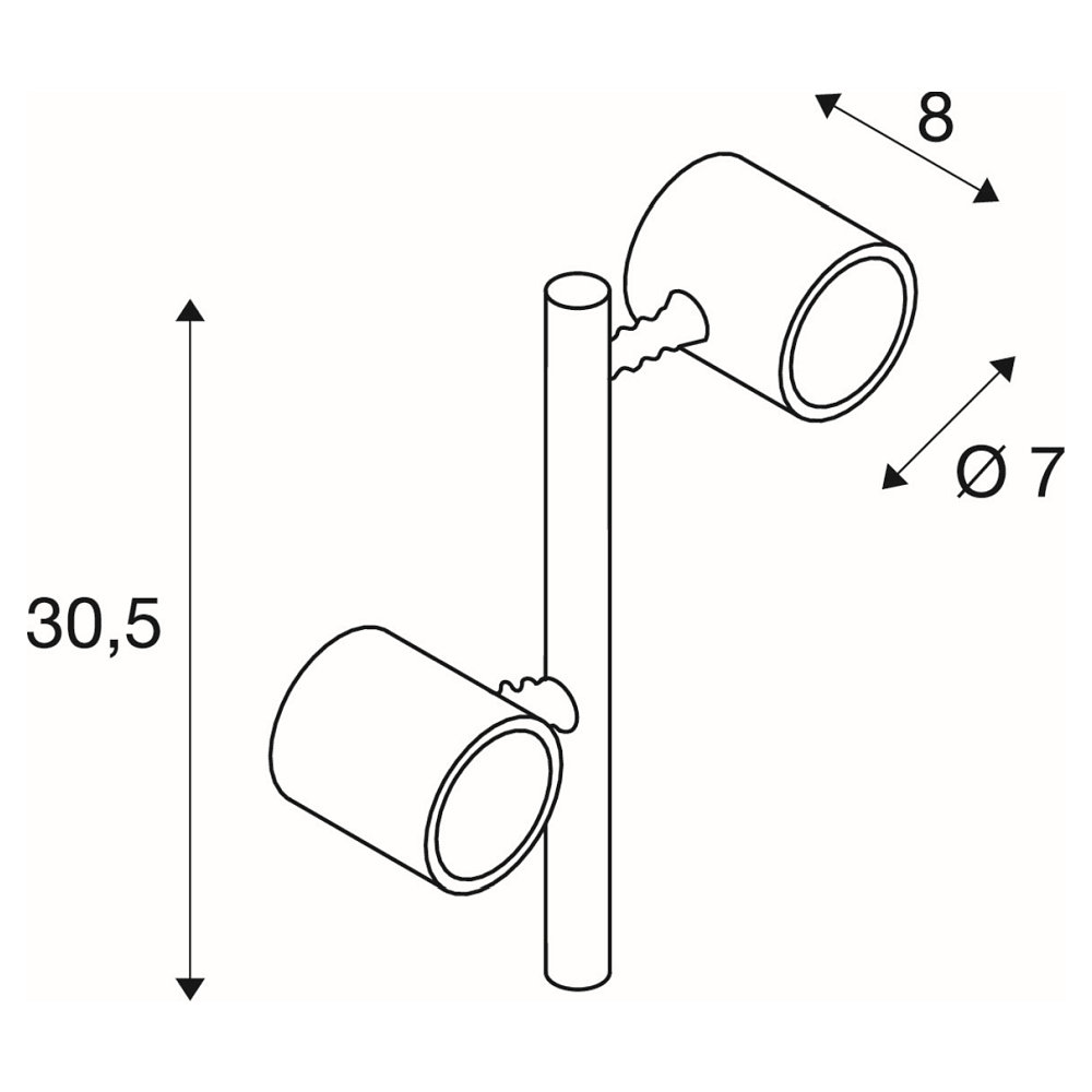 The MYRA SPOT DOUBLE is equipped with 2x GU10 LED bulbs with a maximum power of 4.5W each. The head of the lamp is rotatable and tiltable, allowing the light beam to be individually adjusted. With a rotation range of 340°, the light can be directed into the desired position.