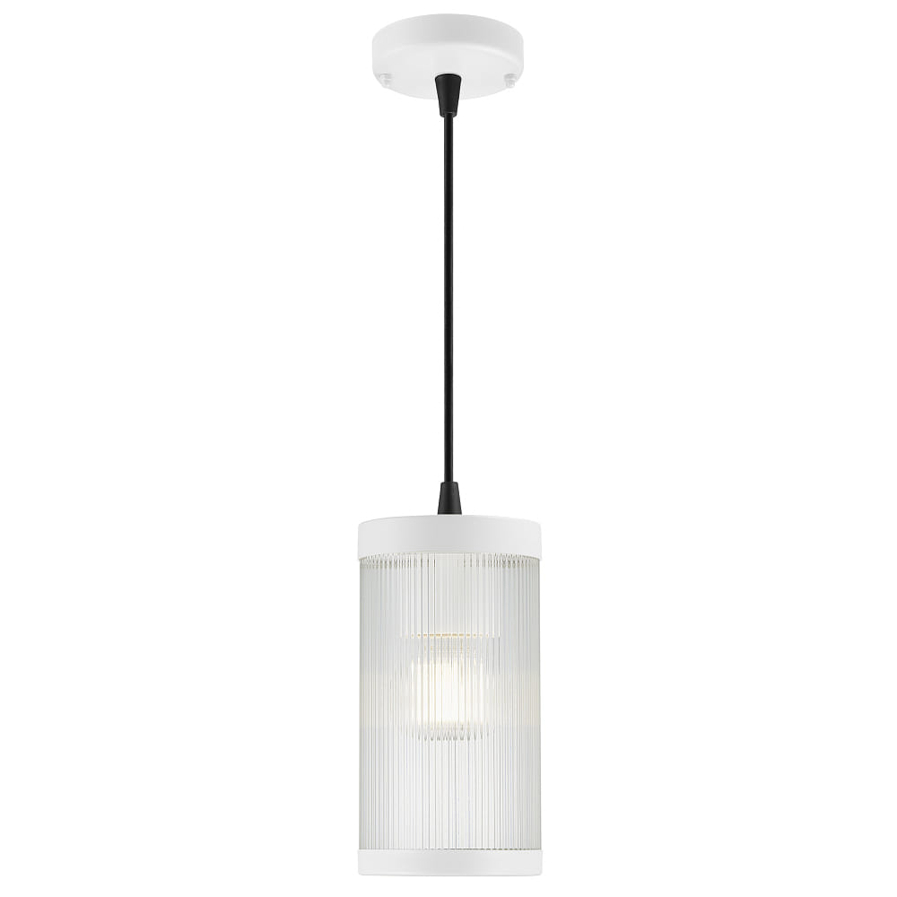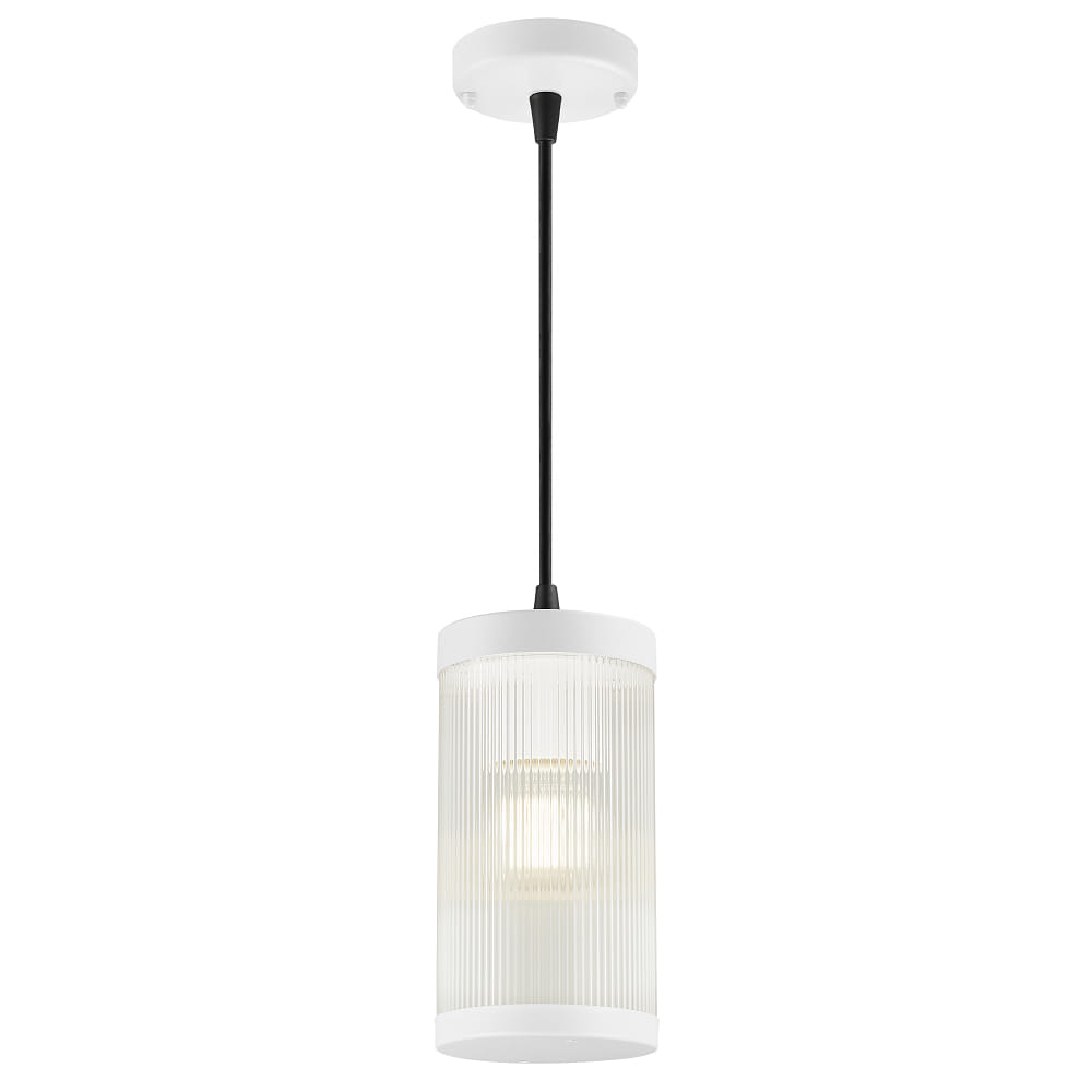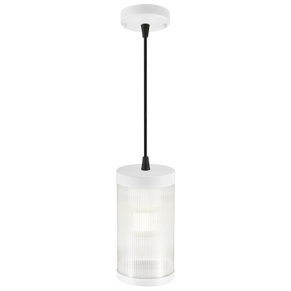 The Outdoor Design Pendant Light COUPAR is a stylish and modern light fixture that can be used both in protected outdoor areas and indoors. The body is made of matte white powder-coated aluminum and features a ribbed PVC diffuser for a pleasant light distribution.