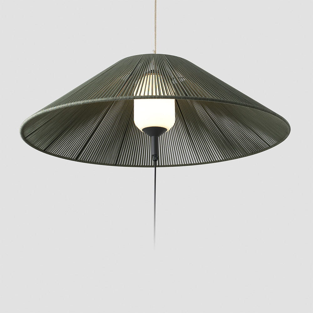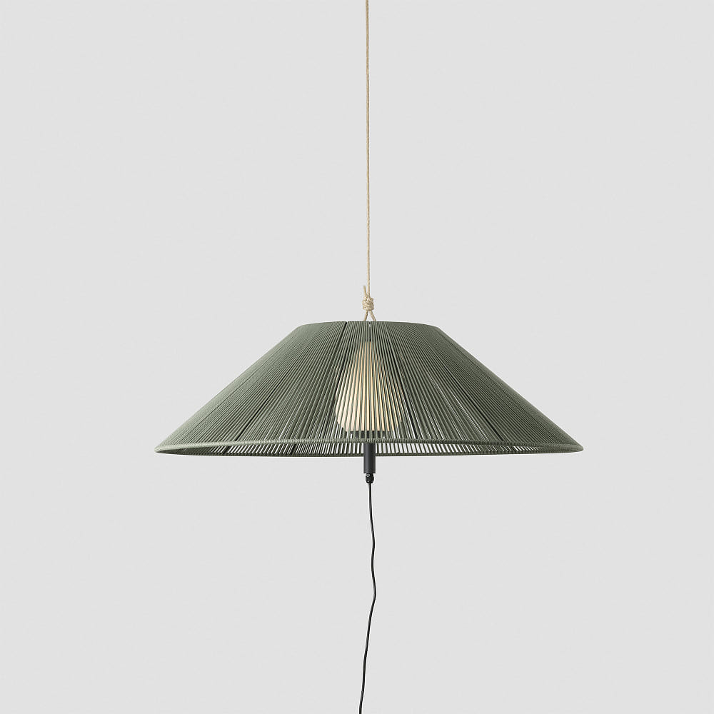 The outdoor pendant light SAIGON OUT C100 E27 from FARO BARCELONA is the ideal lighting solution for your outdoor area. With an attractive design in dark gray and olive green, this pendant light harmoniously blends into any environment. The material made of aluminum and PE-MD ensures durability and resistance to weather influences.