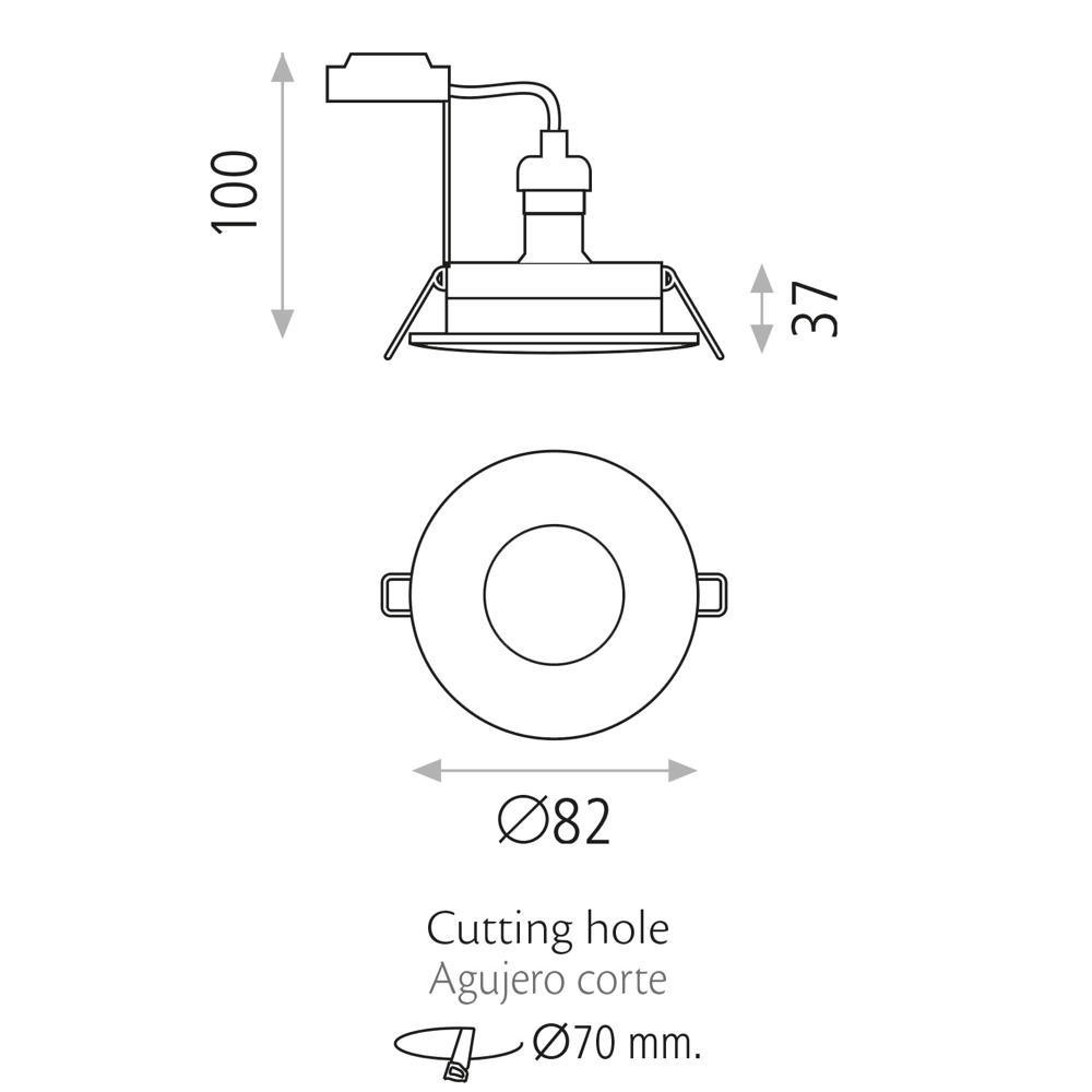 The round light in opal color and white metal housing harmoniously blends into any ambiance. With a size of Ø 8.2 x 10 cm and a weight of only 0.176 kg, it is easy to install and offers a depth of 14 cm. The installation opening is 7 cm in diameter.
