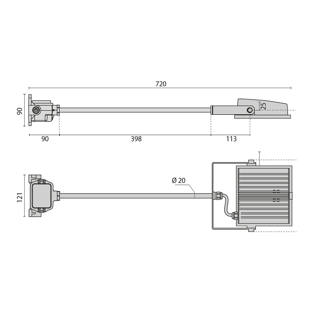 The operating device is included and the LED headlight operates at a voltage of 220-240V. The size is LxWxH: 23.1x20.7x5.8 cm and the ambient temperature should be between -15 and +35°C. The switch-on current is 10A / 600µs and the power factor COS ? is 0.9.