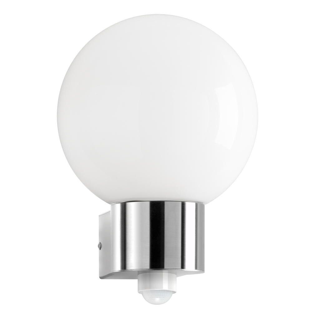 Outdoor wall luminaire AQUA BALL with motion detector, IP44, E27, stainless steel / opal glass