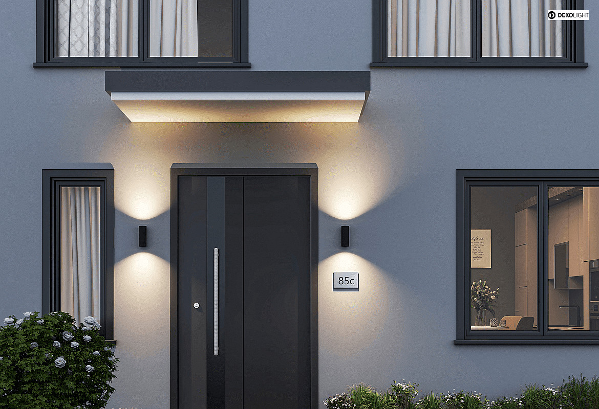 The CAN OUTDOOR UP & DOWN spotlight is ideal for decorative lighting of facades, entrance areas, or interior walls. Its robust construction and simple design make it perfect for use in courtyards, terraces, or gastronomic areas. Particularly practical is the fixed and directed light output, which allows for targeted accentuation. Additionally, the two-flame version enables wide light distribution without unnecessary switches or controls.