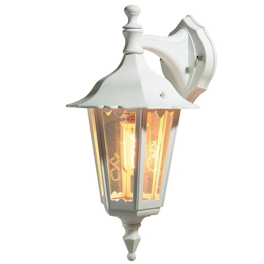 Outdoor wall luminaire FIRENZE DOWN, E27 max. 60W, white aluminium / clear glass