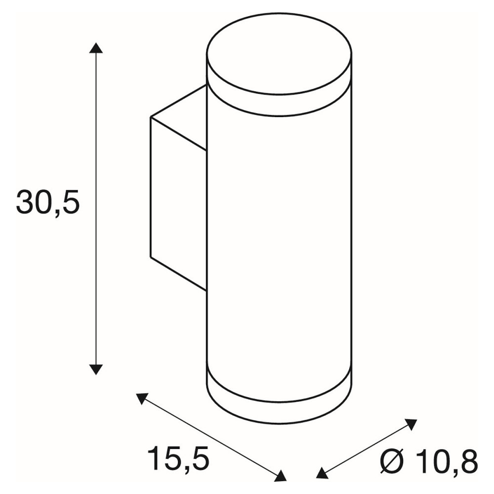 The HELIA PRO L SINGLE LED wall light impresses with its slim, cylindrical design, standing 30.5 cm tall. With a diameter of 10.8 cm, it is especially space-saving and blends harmoniously into any environment. The robust construction and weight of 1.62 kg ensure stable mounting and a long service life. Protection class 1 and IP65 certification guarantee that the lamp is reliably protected against dust and water.