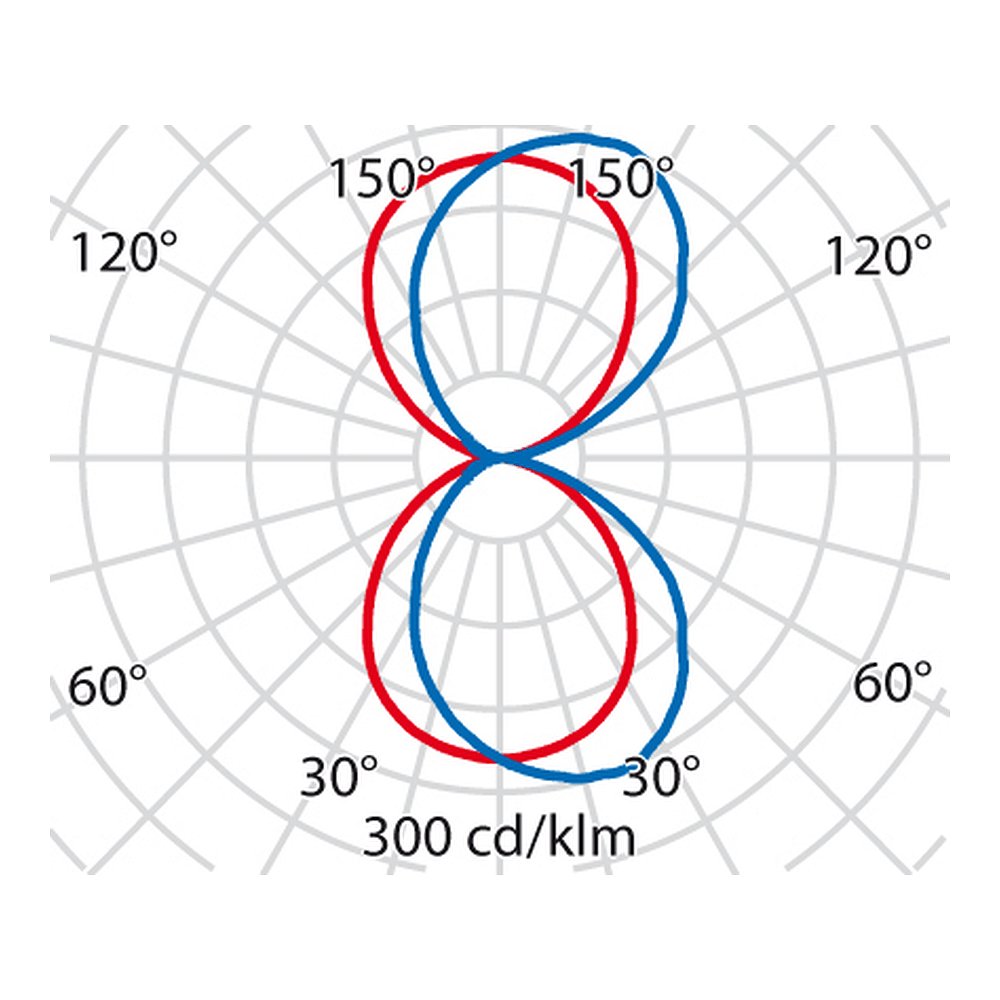 The light distribution of the wall light is both direct and indirect, with a wide beam angle of 40-80°. This creates an asymmetrical wide beam optics, ensuring uniform illumination.