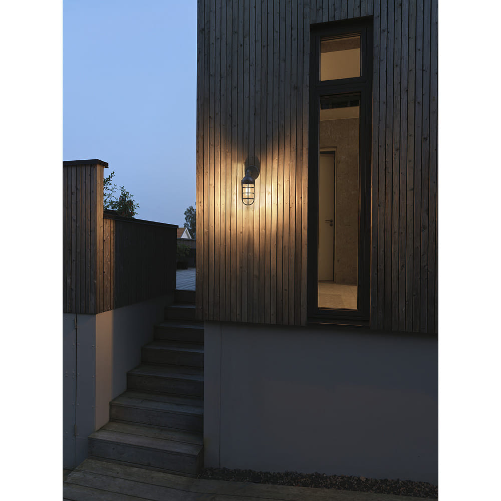 The outdoor wall light OLBIA is operated with an E27 type light bulb. The bulb shape is ST64. The light can be equipped with LED light bulbs up to 14 cm long. Edison filament bulbs look particularly decorative in this light. The light distribution is direct, and light bulbs are not included.