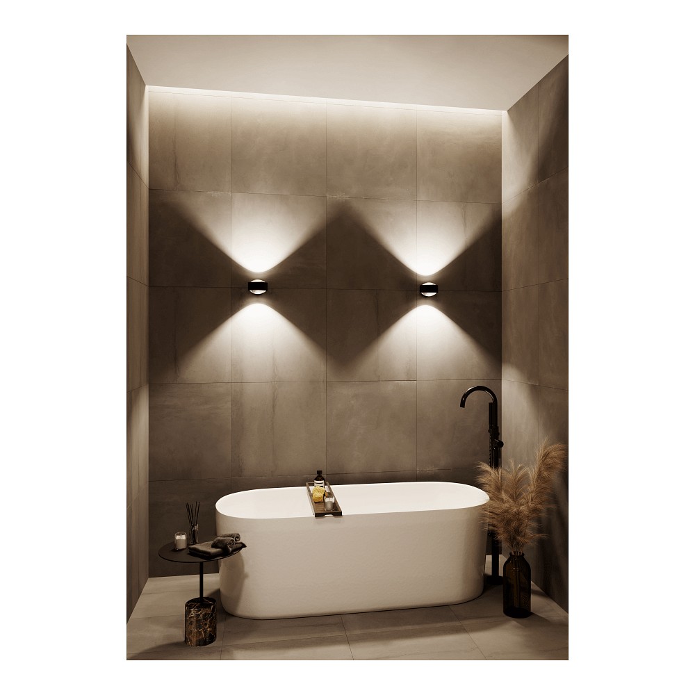 The LED Outdoor Wall Light PUK MAXX WALL OUTDOOR is made of robust metal and has an IP44 protection against moisture and foreign bodies. It is ideal for illuminating outdoor walls and facades, emitting light both upwards and downwards.