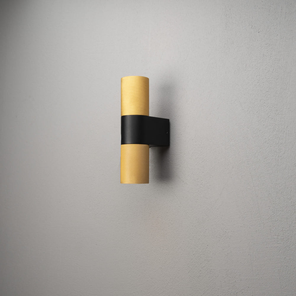 outdoor wall luminaire TEMI up / down, cylindrical GU10 IP54, gold, black dimmable
