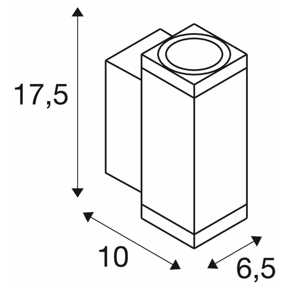 The LED wall light THEO PRO S UP/DOWN impresses with its modern, rectangular design measuring 10 x 6.5 x 17.5 cm. With a height of 17.5 cm, it blends discreetly and stylishly into various environments. The slim housing ensures an elegant appearance and makes the luminaire a striking design element.