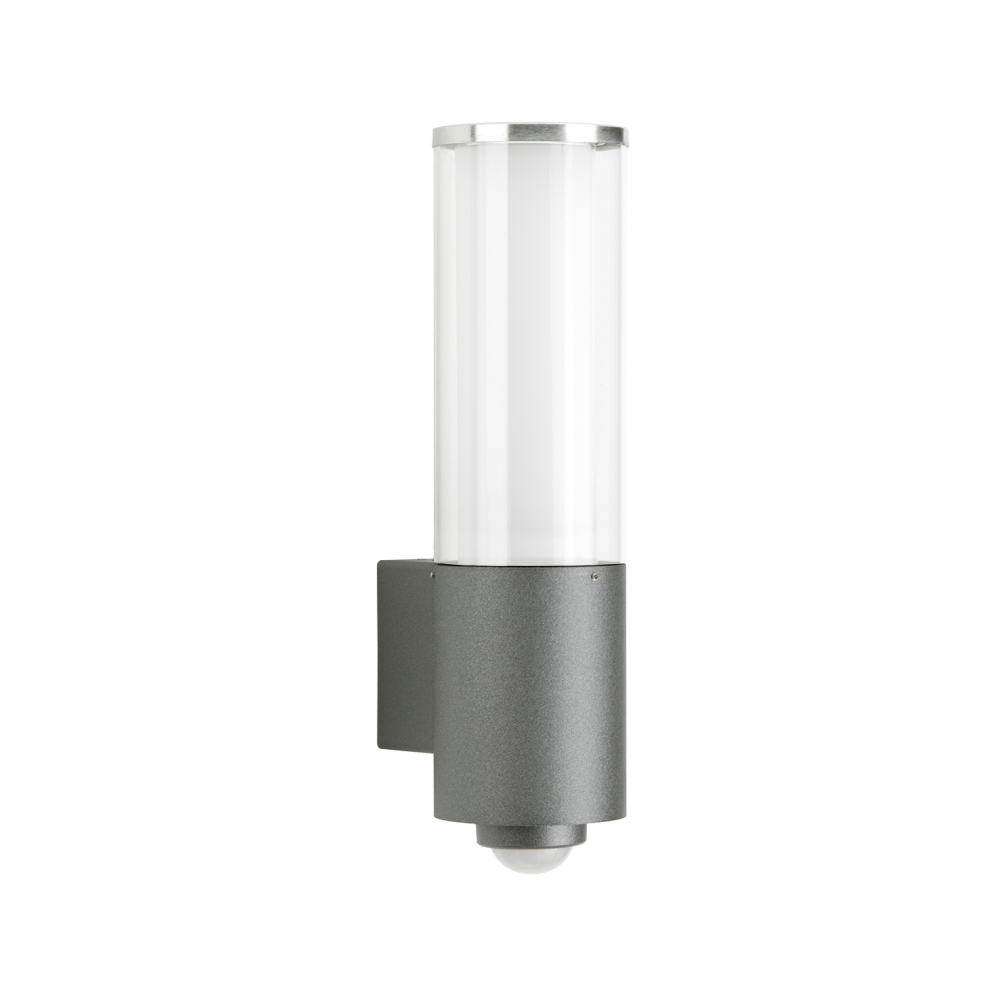 The outdoor wall light is in a modern anthracite color and is made of high-quality stainless steel. The material acrylic glass and opal glass inside ensure even light distribution. The size of the luminaire is Ø/H/T: 10/39/14.5 cm, while the wall bracket has a size of B/H: 5/10 cm. The dimensions of the light source are max. Ø/L: 5.2/17.5 cm.