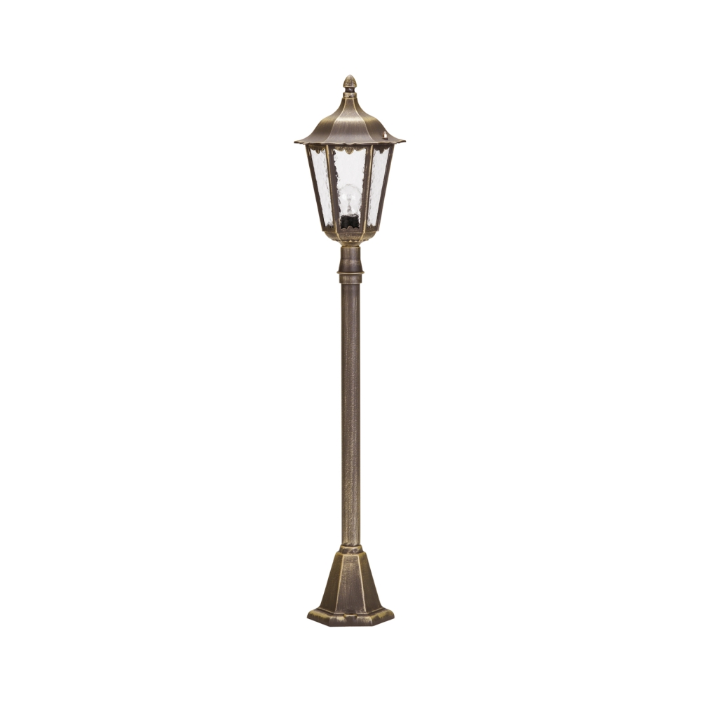 Path light Country style Type No. 4142, height 115cm, E27 QA55 max.57W, cast alu / cathedral glass, brown brass