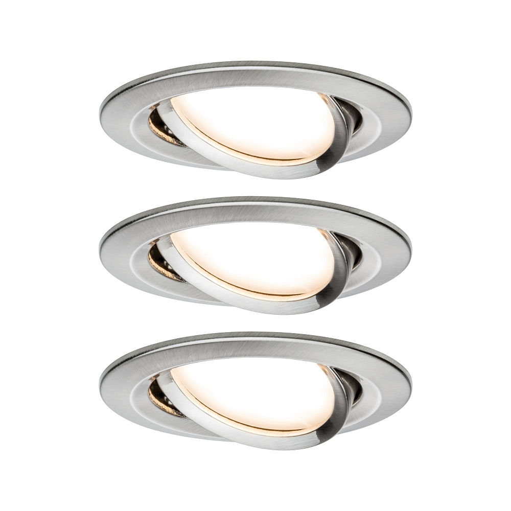 The 3-piece LED Recessed Light Set NOVA PLUS COIN from Paulmann is the perfect solution for stylish lighting in your home. The lights have a round shape and are brushed in the color iron, which creates a modern and elegant design.