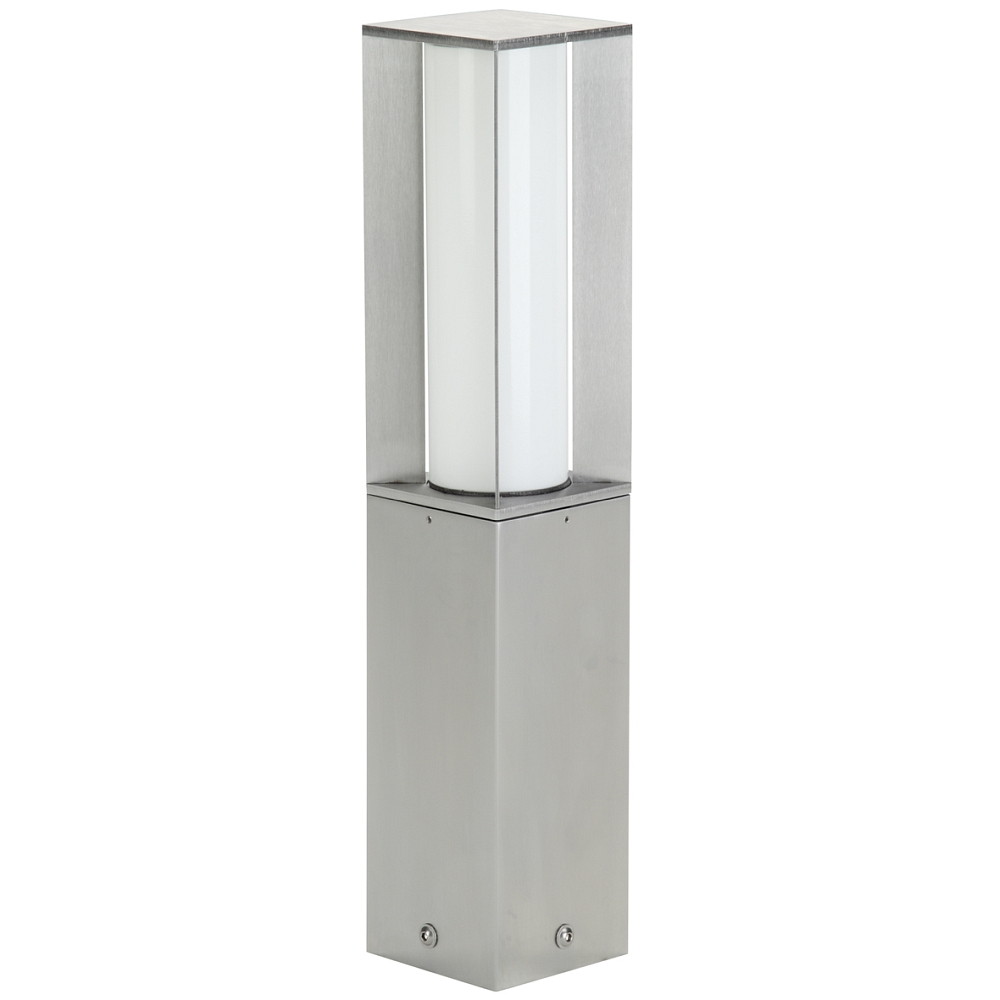 Pedestal luminaire Type No. 0535, square, IP44, height 50cm, E27 max. 20W (LED), stainless steel matt / opal glass
