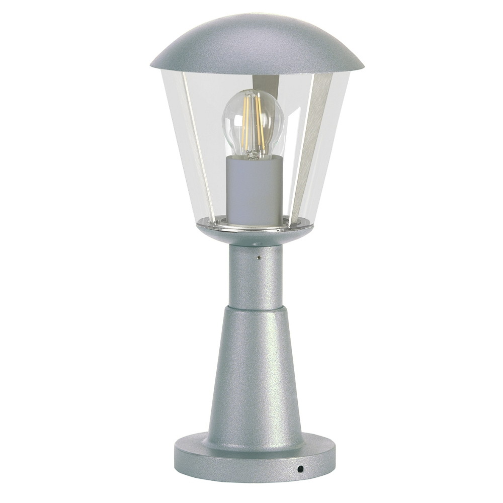 Pedestal luminaire Type No. 0554, IP54 IK08, 40.5cm, E27 QA55 max. 57W, Aluminium / plastic clear, impact resistant, silver