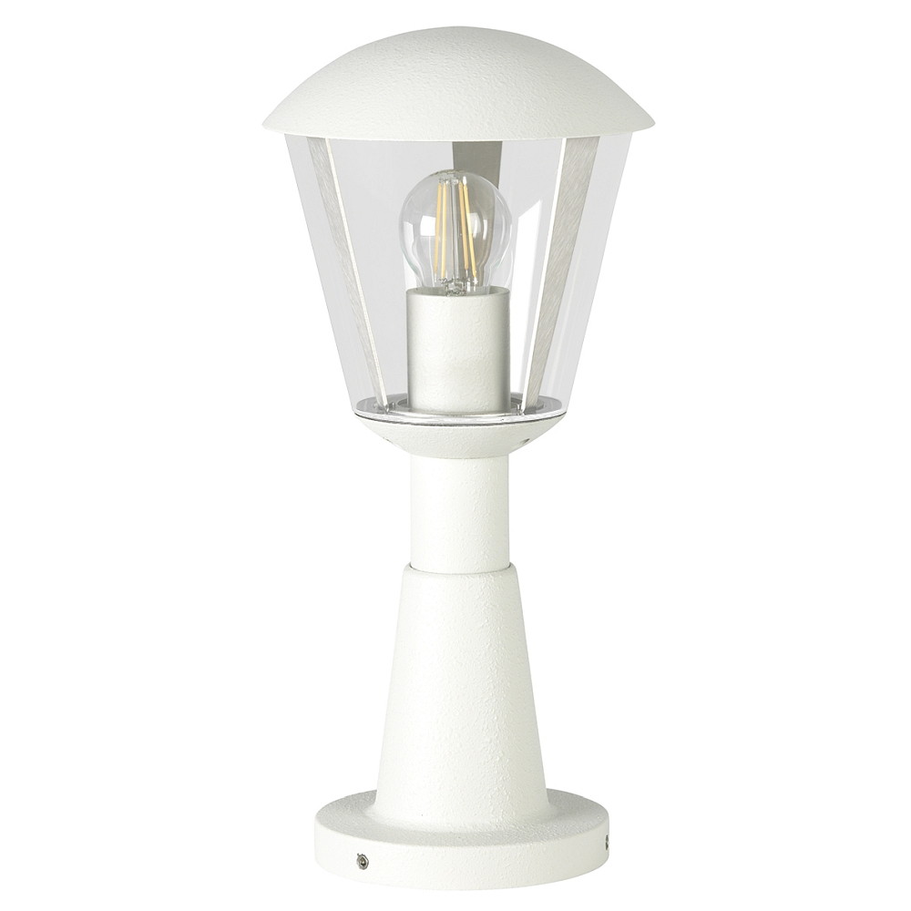 Pedestal luminaire Type No. 0554, IP54 IK08, 40.5cm, E27 QA55 max. 57W, aluminum / plastic clear, impact resistant, white
